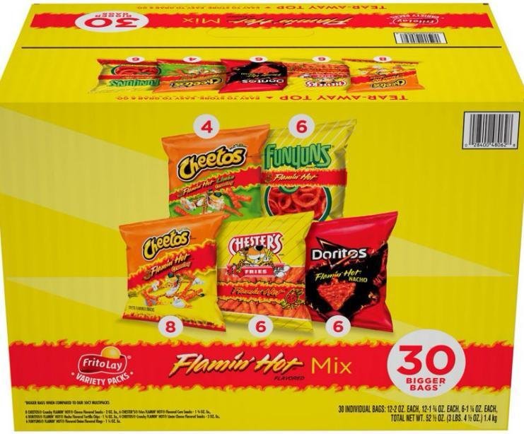 • Flamin’ Hot Cheetos, Funyuns, Chesters and Doritos